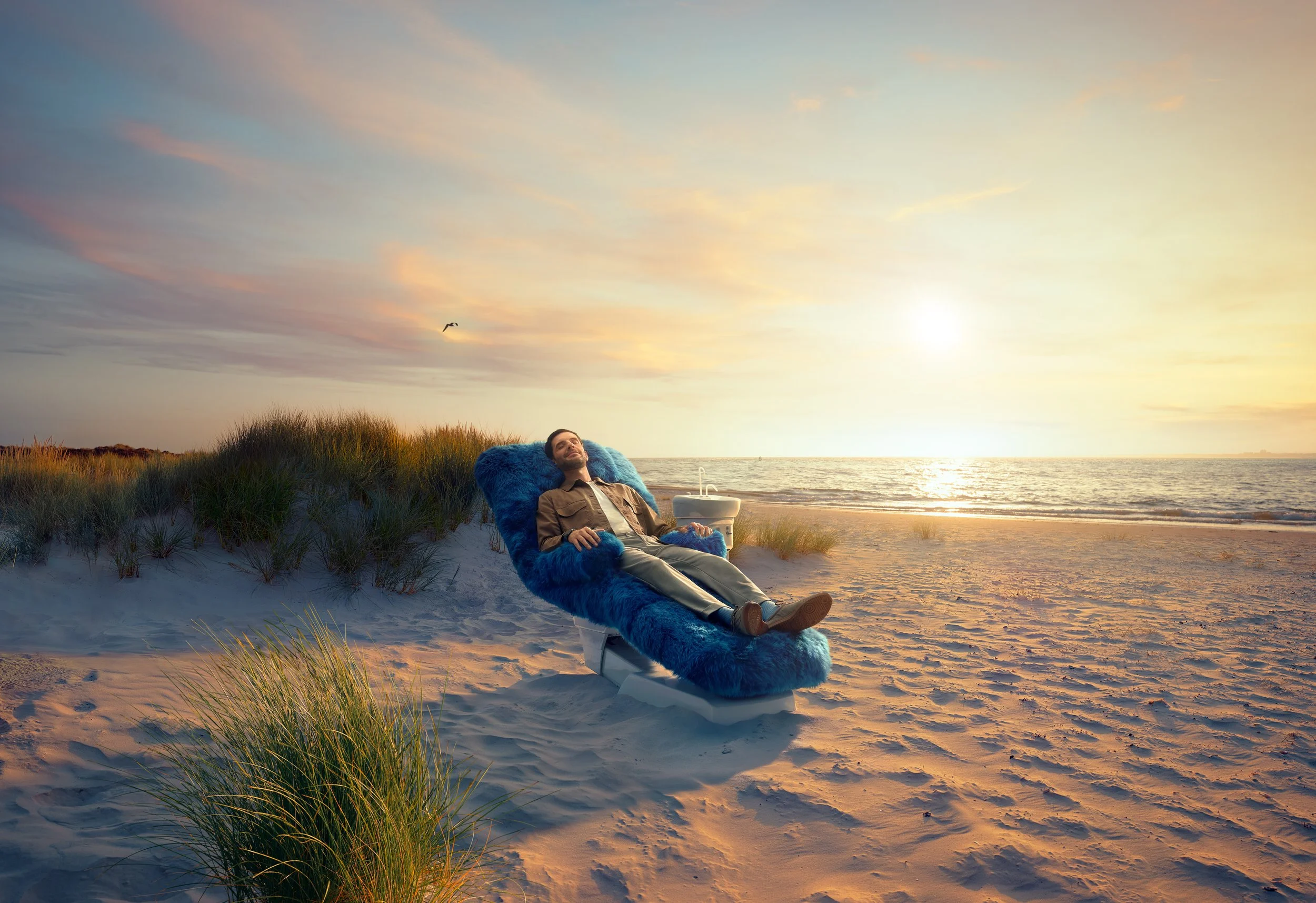 Our team provided bespoke prop fabrication and on-set set dressing for the Bupa Dental Care ‘Feel at Ease’ campaign. The project included the creation of a custom blue sheepskin cover for a dental chair, tailored specifically to fit the clinical equipment.